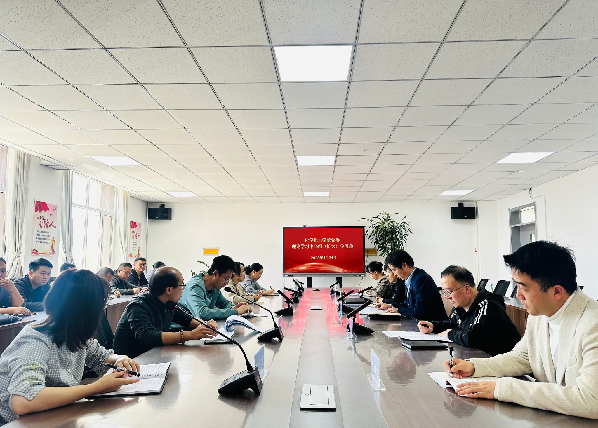 4月24日,化学化工学院召开党委理论学习中心组(扩大)学习会,党委理论学习中心组成员、全体党员参加会议。